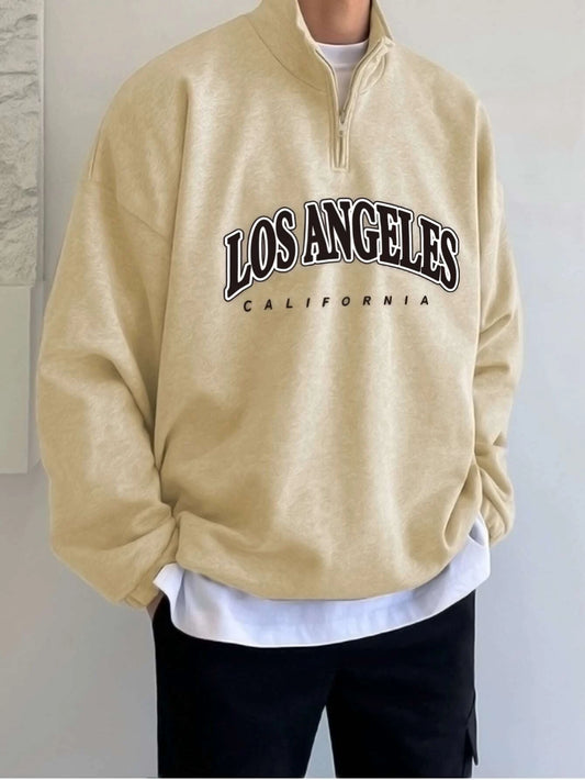 Manfinity Hypemode Men Letter Graphic Quarter Zipper Drop Shoulder Loose Sweatshirt without Tee, Light Grey Letter Long Sleeve Casual Mock Neck Sweatshirt, for Friends, Husband, Boyfriend Gifts